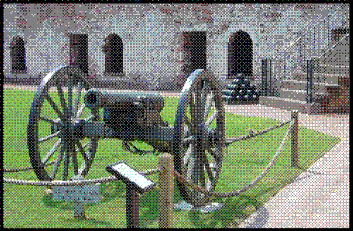 Whenever you reduce an image's color resolution to 8 bits per pixel or less, a dithering method comes into play. Dithering methods create the appearance of more subtle shades by mixing in pixels of different colors. This is similar to the way newspaper pictures produce the appearance of shades of gray, even though the only actual colors are black and white.