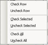 Note that right-clicking a row will display the following popup menu to make it easier to select rows. You can also drag the mouse to select a group of check boxes, and then choose "Check Selected" from the popup menu.