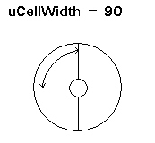 divided into cells, based on the number of degrees in the CellWidth property, as shown below: