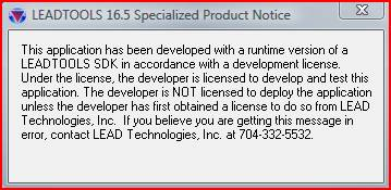 If you have licensed a LEADTOOLS SDK requiring runtime licenses, you will notice that when compiling your application or running our demos, a dialog box will occasionally pop up reminding you of the runtime license requirement:
