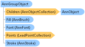 The annotation group object contains a collection of annotation objects from any class that is derived from the AnnObject class. This collection of objects can be treated as one while they are in a group. An annotation object can be in either a container or a group but not both at the same time.