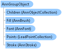 The annotation group object contains a collection of annotation objects from any class that is derived from the AnnObject class. This collection of objects can be treated as one while they are in a group. An annotation object can be in either a container or a group but not both at the same time.