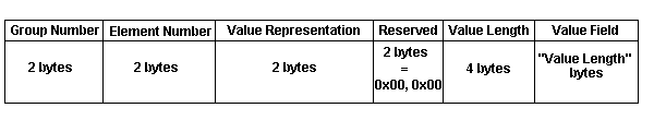 - For VRs of OB, OW, OF, SQ and UN, the 16 bits following the two character VR Field are reserved for use by later versions of the DICOM Standard. These reserved bytes shall be set to 0000H and shall not be used or decoded. The Value Length Field is a 32-bit unsigned integer. If the Value Field has an Explicit Length, then the Value Length Field shall contain a value equal to the length (in bytes) of the Value Field. Otherwise, the Value Field has an Undefined Length and a Sequence Delimitation Item marks the end of the Value Field.