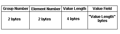 When using the Implicit VR structure the Data Element shall be constructed of three consecutive fields: Data Element Tag, Value Length, and Value. If the Value Field has an Explicit Length then the Value Length Field shall contain a value equal to the length (in bytes) of the Value Field. Otherwise, the Value Field has an Undefined Length and a Sequence Delimitation Item marks the end of the Value Field.