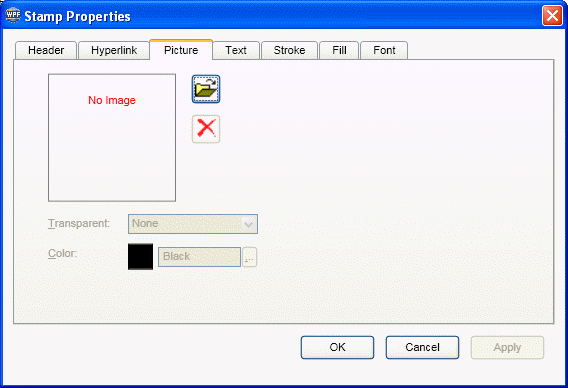The following figure shows the Picture tab on the properties page of a WPF Stamp annotation object: