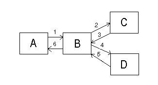 D sends this call to B. The second parameter indicates that this is in response to the second message sent by B.