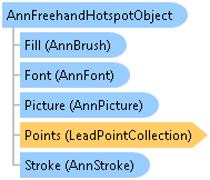 The AnnFreehandHotspotObject class inherits a number of properties from the AnnObject class, providing support for font, stroke and fill characteristics. These properties are listed below:
