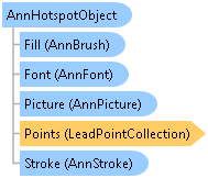 The AnnHotspotObject class inherits a number of properties from the AnnObject class, providing support for font, stroke and fill characteristics. These properties are listed below: