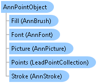 The AnnPointObject class inherits a number of properties from the AnnObject class, providing support for font, stroke and fill characteristics. These properties are listed below: