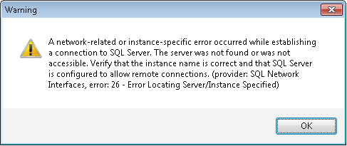 Click OK. You may receive a "Named Pipes Provider, error: 40" message box, as shown in the following figure: