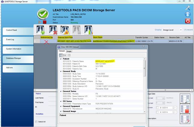 Double-click the patient to verify that the patient name was changed in the database, and the actual dataset