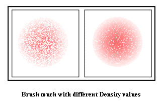 Value indicating the amount of paint the brush applies with each stroke. Increasing the density of the brush is comparable to increasing the number of bristles in the brush. With more bristles, more paint is applied in a stroke. Similarly, decreasing the density decreases the number of bristles in the brush. With fewer bristles, less paint is applied in a stroke. Valid values are 1 to 100 and represent a percentage. A value of 100% results in the surface being completely covered with paint. A value of 1% results in very little paint being applied to the surface.