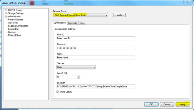 Select the LEAD Sample External Store Addin from the drop down list, and click the Apply button