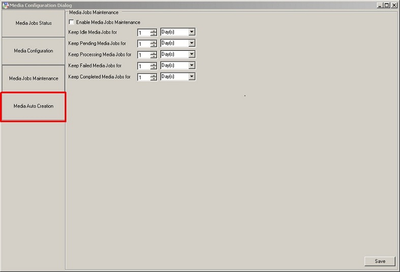 On the Media Configuration Dialog, click the Media Auto Creation button.