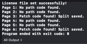 SetLicense()let inputFile: String = "/path/to/patch-codes.tif"let codecs: LTRasterCodecs = LTRasterCodecs()let info: LTCodecsImageInfo = try codecs.imageInformation(file: inputFile, totalPages: true)for page in 1...info.totalPages {let image: LTRasterImage = try codecs.load(file: inputFile, pageNumber: page)SplitPatchDocument(image: image, page: page)}